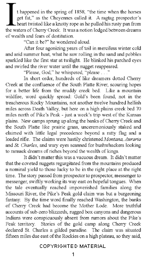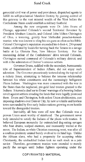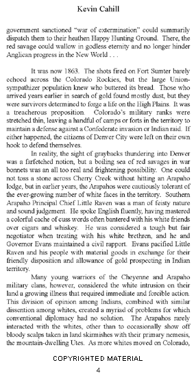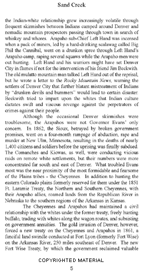 This work is a novelization based on Sand Creek, a Screenplay by Kevin Cahill Copyright ©1996 by Kevin I. Cahill.